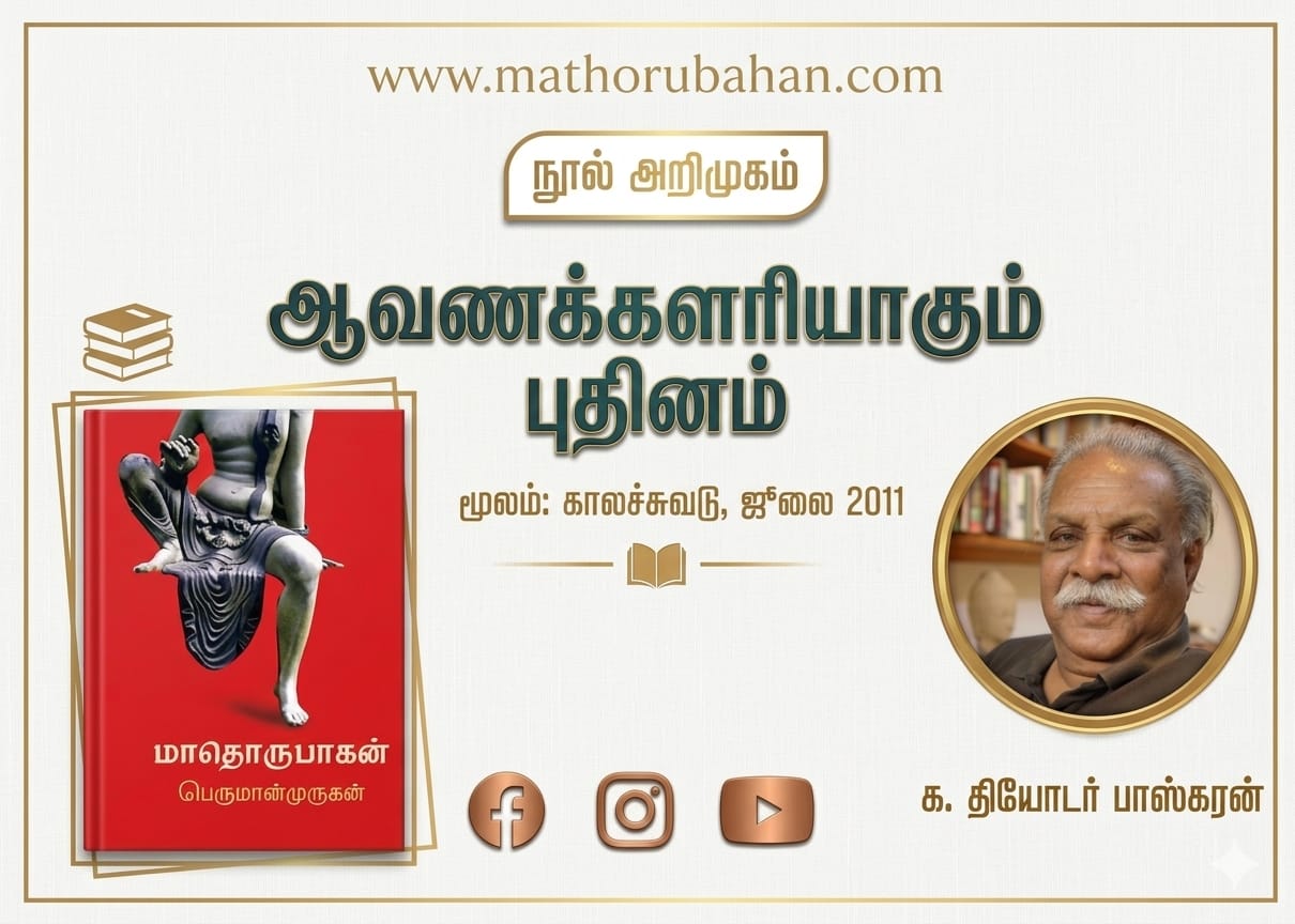 நாவல் எழுதுவதற்கு ஆயத்தமாகப் பின்புல ஆய்வுசெய்வது தமிழ் இலக்கியத்திற்குப் புதிது. அதனால்தான் பல நாவல்களில் கால முரண்பாடுகள் துருத்திக்கொண்டு நிற்கின்றன. ஆய்வுசெய்வதற்கும் விவரங்கள் சரியா என்று பார்ப்பதற்கும் வலையில் இன்று மென்பொருட்கள் பல இருந்தும் இவற்றை இலக்கியப் படைப்பிற்குப் பயன்படுத்துபவர் நம்முள் குறைவு. பெருமாள்முருகனுக்கு நாவல் எழுதுவதற்குக் கிடைத்த நல்கையைக்கொண்டு திருச்செங்கோடு பகுதியையும் வரலாற்றையும் ஆழ்ந்த கள ஆய்வுசெய்து மாதொருபாகன் நாவலை உருவாக்கியிருக்கிறார். நாவலின் இடமும் காலமும் துல்லியமாகச் சித்தரிக்கப்படும்போது அதன் உயிரோட்டம் தீவிரமாகின்றது.